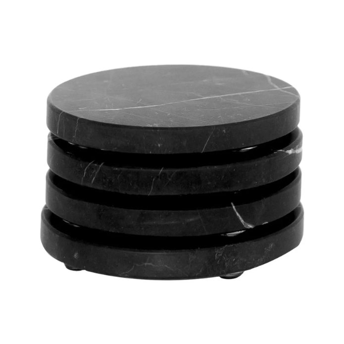 Set of 4 handmade black marble coasters — functional, elegant, and perfect for gifting. Natural variations in tone and veining make each piece unique.