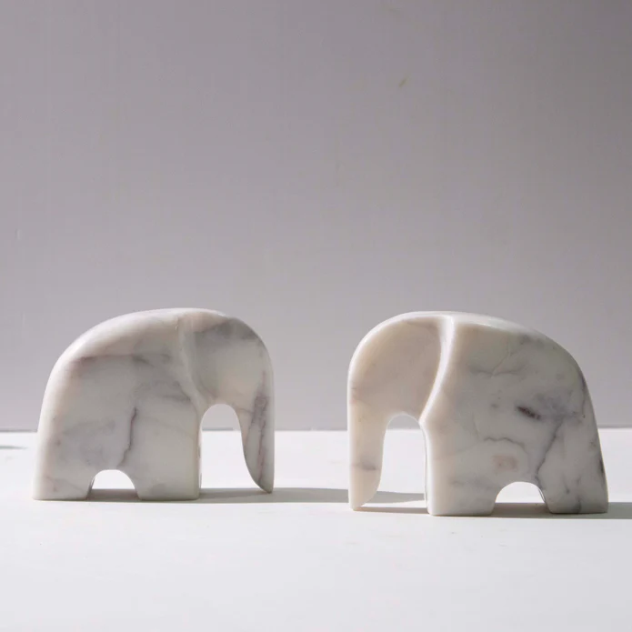 A refined white marble elephant duo with modern detailing, representing grace, balance, and strength in your décor.