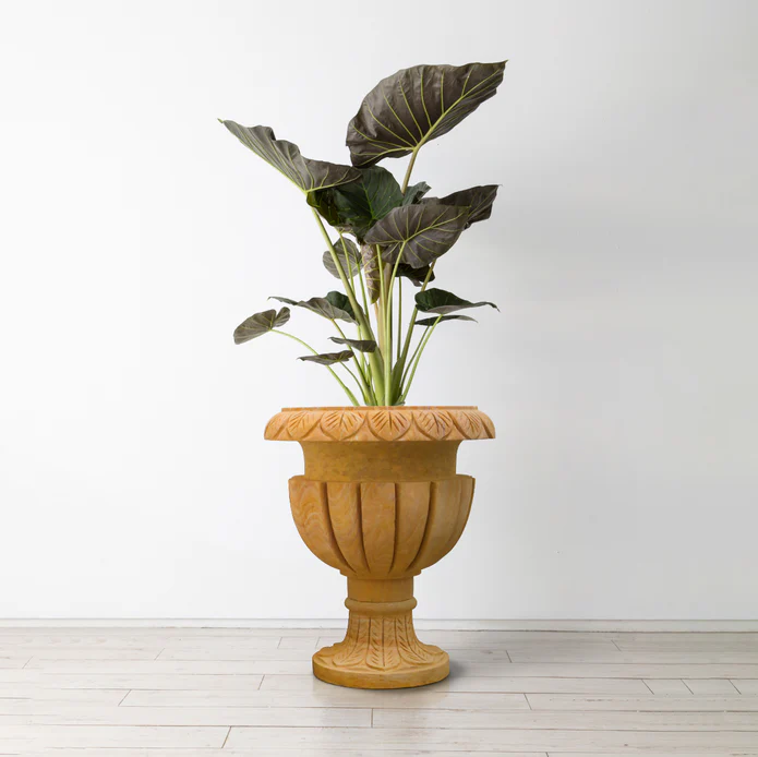 Intricately hand-carved from natural sandstone, this elegant pot adds rustic beauty and artisanal charm to any space.